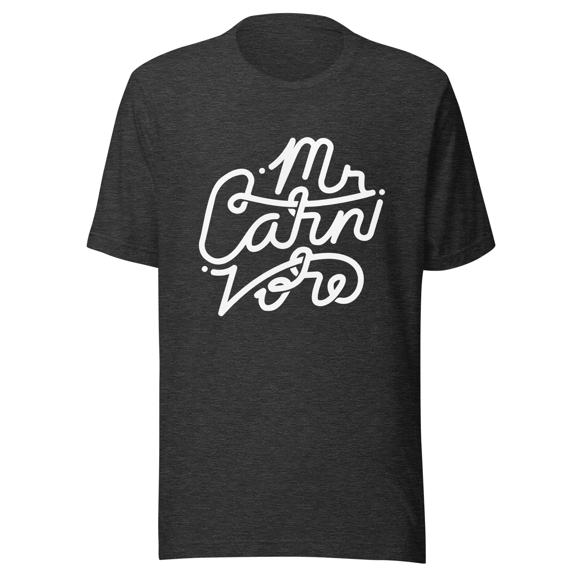 Show off the latest Mr. Carnivore Signature Logo with bold style. This tee features our stacked logo layout, screen printed across the full front for maximum impact. Printed on the ultra-soft Bella + Canvas 3001 shirt, it's built for comfort, durability, and everyday wear. Perfect for gigs, backyard hangs, or repping the band wherever you go.